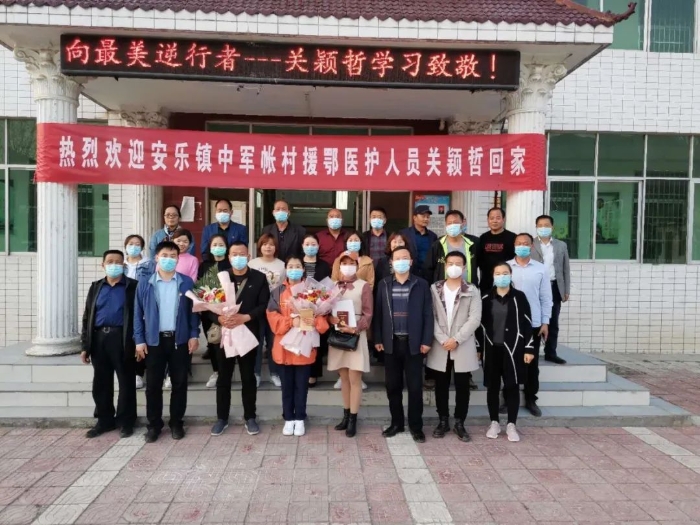 最后,安乐镇党委书记廖琪代表镇党委、政府欢迎关颖哲凯旋归来,并强调:一是疫情尚未结束,大家思想坚决不能放松;二是全体干部要珍惜关颖哲等抗疫战士争取来的成绩,再接再厉,抗战疫情;三是号召全体党员向关颖哲学习,做一名无畏的奉献者;四是镇党委会全力确保关颖哲家人的生活所需,让她没有后顾之忧的全力投入到接下来的抗疫战斗中。