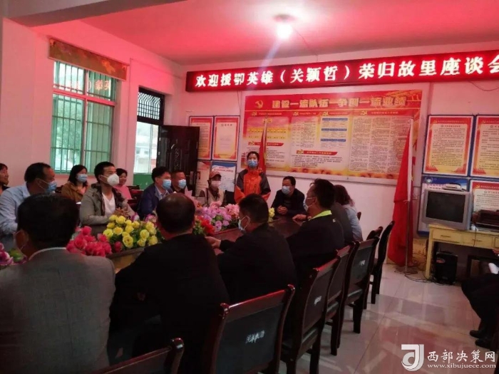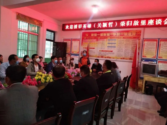 欢迎仪式结束后,镇党委在中军帐村会议室召开了座谈会,邀请关颖哲现场分享亲身经历,在讲述过程中,这位坚强的抗疫战士数次哽咽,在场的干部深受感动,用关颖哲的话说“没有一个冬天不可逾越,没有一个春天不会来临……花开疫散,我们相见”。中军帐村党委书记王双林代表村党委、村委会送上诚挚问候“欢迎回家”,并号召大家向全村的楷模学习,用实际行动为乡村振兴努力奋斗。