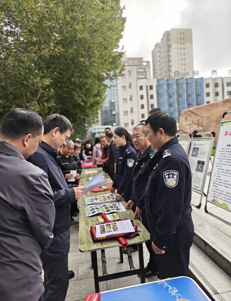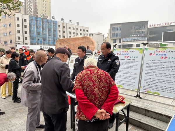 10月14日,潼关县公安局会同法院、检察院、林业局、市管局、农业农村局等在祥和广场联合开展“打击整治野生鸟类”保护野生动物宣传活动,副县长、公安局局长雷建利到场指导。