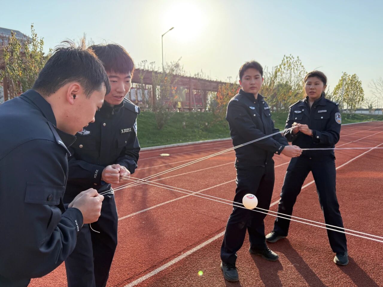 “千里传珠” 项目中,民警们被随机分成若干小组,每组队员手持拼接的管道,需在不触碰小球的前提下,通过团队协作将乒乓球从起点传递至终点。过程中,大家时而屏息凝神调整管道角度,时而轻声沟通协调步伐,遇到小球掉落的情况,没有抱怨与指责,只有迅速补救的默契与相互鼓励的眼神。“这个项目太考验配合了,平时工作中我们是并肩作战的战友,今天在游戏里更是心往一处想、劲往一处使,那种团队凝聚力油然而生。” 参与活动的民警说道。