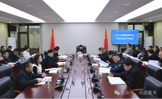 2025年12月22日,潼关县召开县委书记点评法治工作会议。县委书记、县委全面依法治县委员会主任于娟侠主持会议并讲话。县长、县委全面依法治县委员会副主任左俊,县委副书记、县委全面依法治县委员会副主任李少博,县级领导韦红刚、王世辉、陈永笛、赵亮、李宁、赵慰、雷建利、王亚锋及各镇(街道)、县级相关部门主要负责同志共54人参加会议。