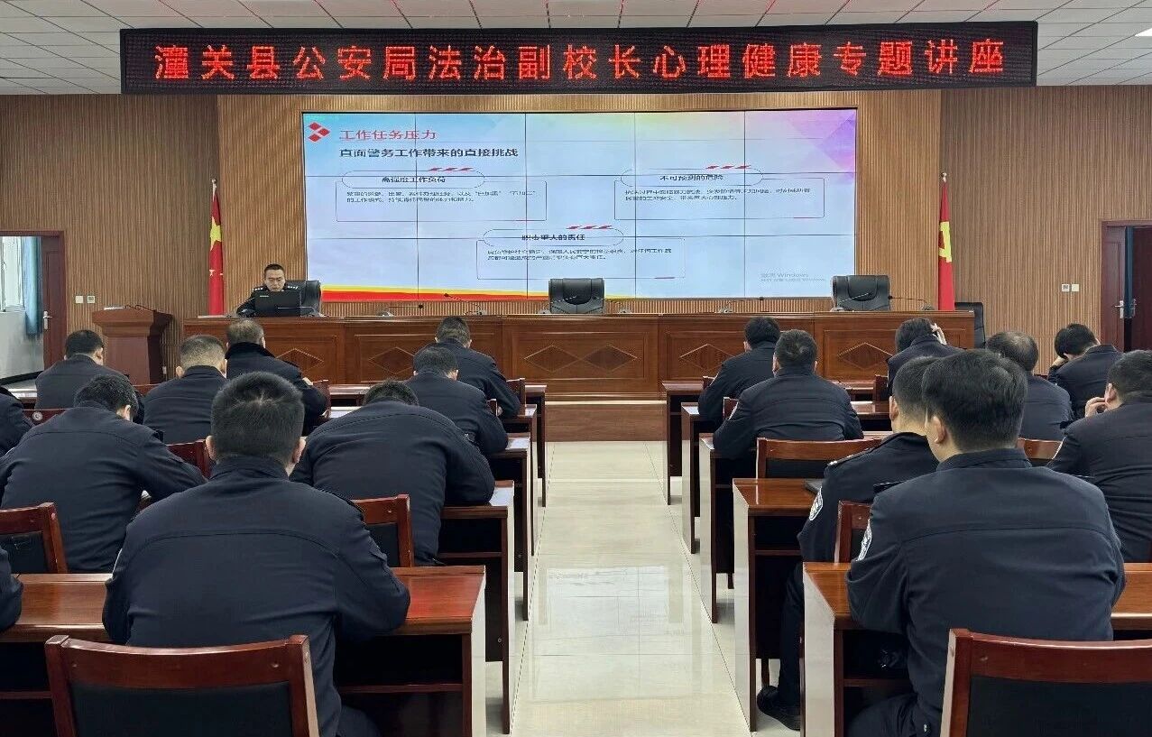 在第六个中国人民警察节即将到来之际,为切实关爱全局民辅警身心健康,精准纾解基层所队执法执勤工作中的心理压力。2026年1月6日上午,潼关县公安局举办心理健康知识专题讲座,讲座邀请国家三级心理咨询师张鉴为基层法治副校长及民辅警授课。