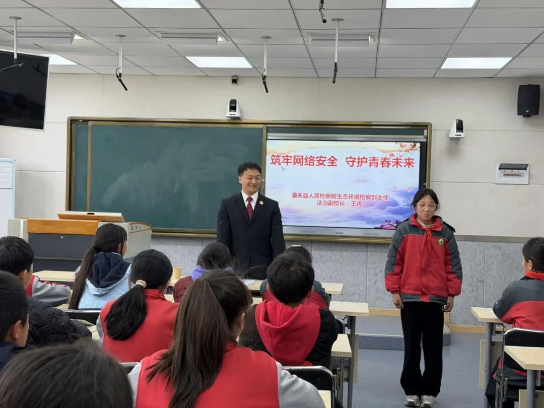 为进一步增强小学生法治观念,筑牢校园安全防线,3月16日,潼关县人民检察院检察官、太要镇中心小学法治副校长王虎以“筑牢网络安全 守护青春未来”为主题,为同学们带来一堂集知识性与互动性于一体的法治教育课,让“法治同行”的理念深植每一位学生心中。