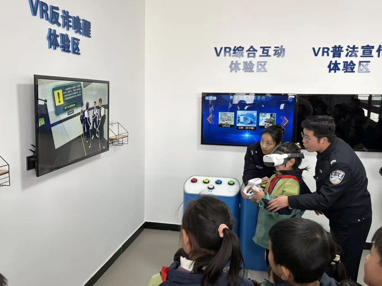 民警特别强调:“看到同学被欺负,我们要像雷锋叔叔一样挺身而出,但不是冲动打架,而是及时告诉老师和家长,用正确的方式帮助同学。在防范电信网络诈骗环节,民警结合针对未成年人的诈骗案例,提醒同学们警惕“游戏皮肤免费领”“冒充老师收学费”等常见骗局,号召大家做“反诈小宣传员”,将安全知识传递给家人。随后,同学们通过VR体验火灾逃生、防暴恐场景,直观掌握避险技能。